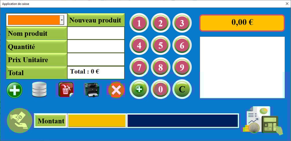 - Interface intuitive : Clavier numérique intégré, sélection rapide des produits et boutons explicites pour ajouter, supprimer ou mettre à jour les informations