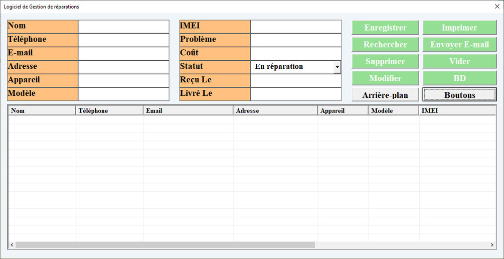 - Gestion des clients : Enregistrez et consultez facilement les informations de vos clients (nom, téléphone, e-mail, historique des réparations) pour un suivi personnalisé.